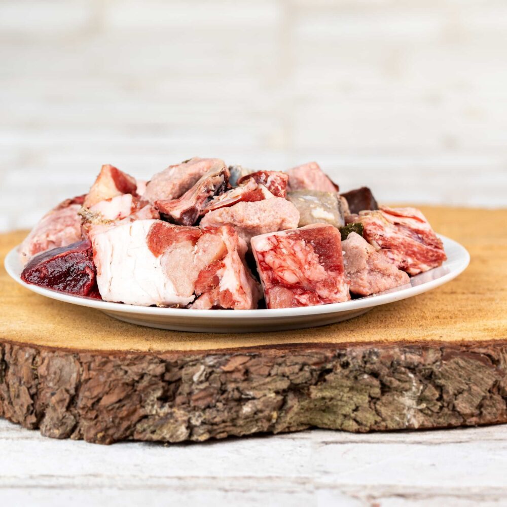 Een lekker vleesmenu in stukjes van lam. Samengesteld volgens de klassieke BARF-verdeling. Ideaal voor honden vanaf 15 kg lichaamsgewicht bij exclusieve voeding. We raden aan om meer dan één zakje per week te voeren om lichte variaties per zakje te compenseren.